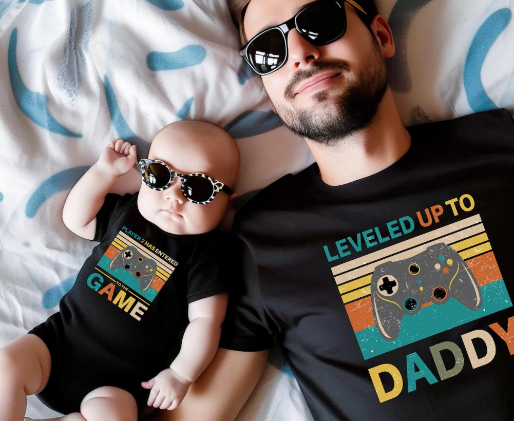 Laat vader en kind stralen in matching kleding. Denk aan petten, shirts of rompers.
